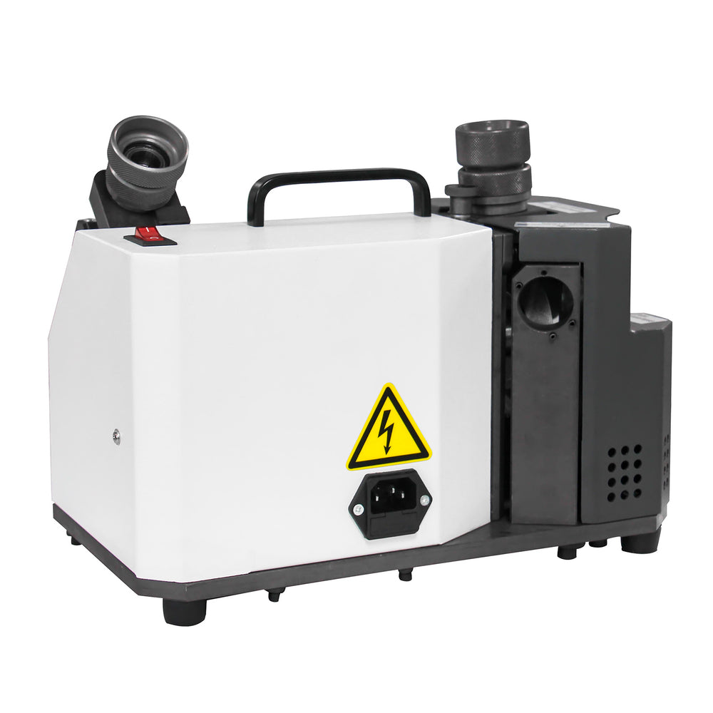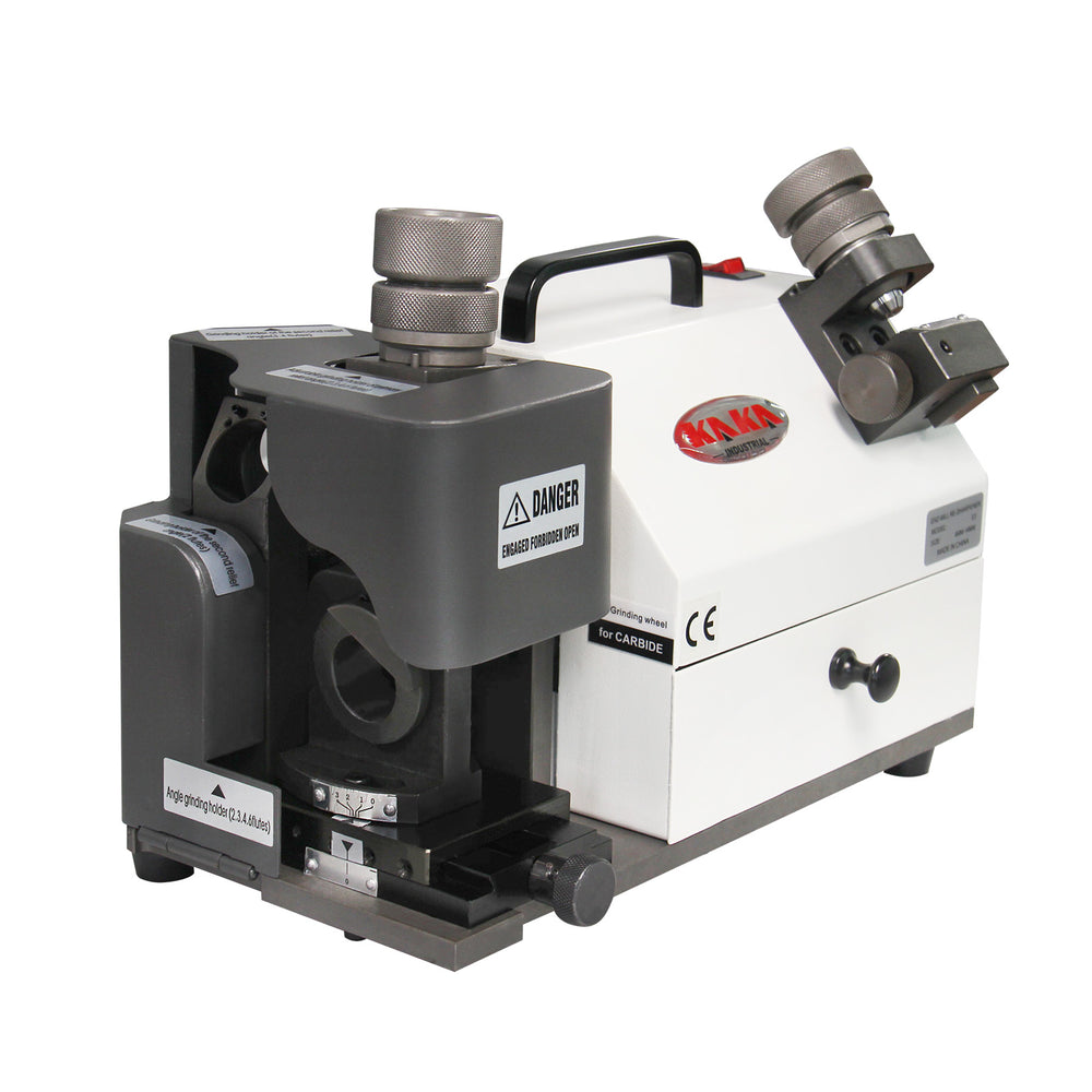 The KANG Tool Grinder / End Mill Sharpener TX-X3 is a compact, bench-top dedicated sharpener for precise and cost-effective re-sharpening of HSS and carbide end mills/milling cutters. Designed for simple, user-friendly operation in tool rooms, workshops, maintenance shops, or small fabrication setups, it excels at face grinding the end teeth plus an additional station for grinding the outer circumferential spiral cutting edges (flutes). It handles cutters with diameters from 4 mm to 14 mm, supporting 2-, 3-, and 4-flute cutters fully. The sharpener machine uses a high-quality SDC grinding wheel for efficient, cool grinding with minimal heat buildup to preserve tool hardness.