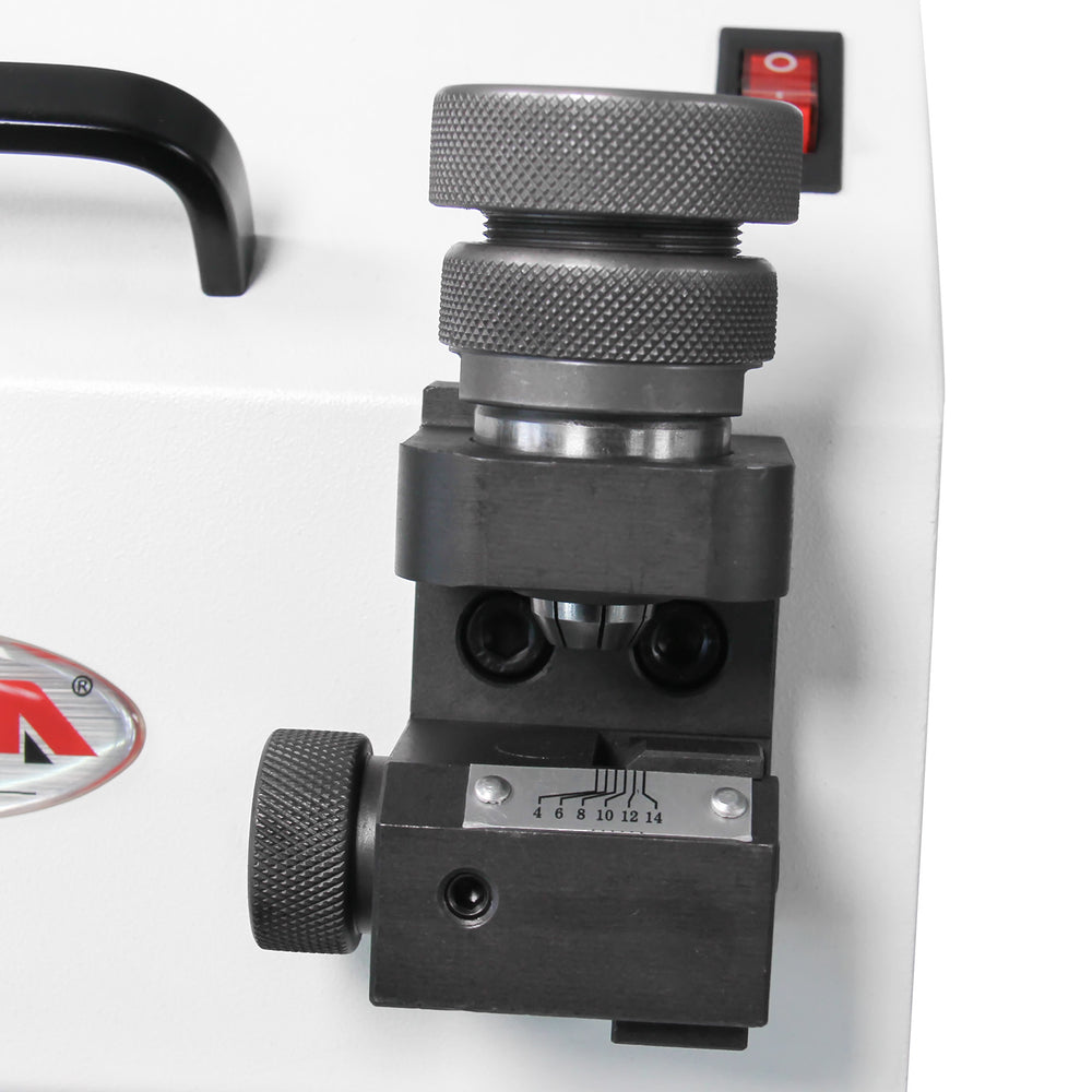 Targeted for Re-Sharpening End Mills 4–14 mm Diameter. Sharpens the most common small-to-medium end mill sizes used in workshops — perfect for precision milling in aluminium, steel, plastics, or composites without needing oversized industrial sharpeners.