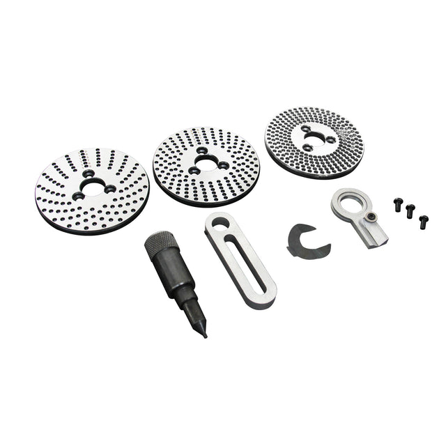 The KANG Dividing Plates Set DP-1 is a complete 3-piece accessory kit designed specifically for HV-4 & HV-6 rotary tables. These plates enable precise indirect indexing and division of workpieces into accurate angular increments, essential for tasks such as gear cutting, fluting, drilling bolt circles, or multi-sided machining on milling machines. The set includes three high-quality dividing plates (A, B, and C), along with a crank handle, 3-piece screw set, sector arms, and U-washer for full compatibility and easy setup.