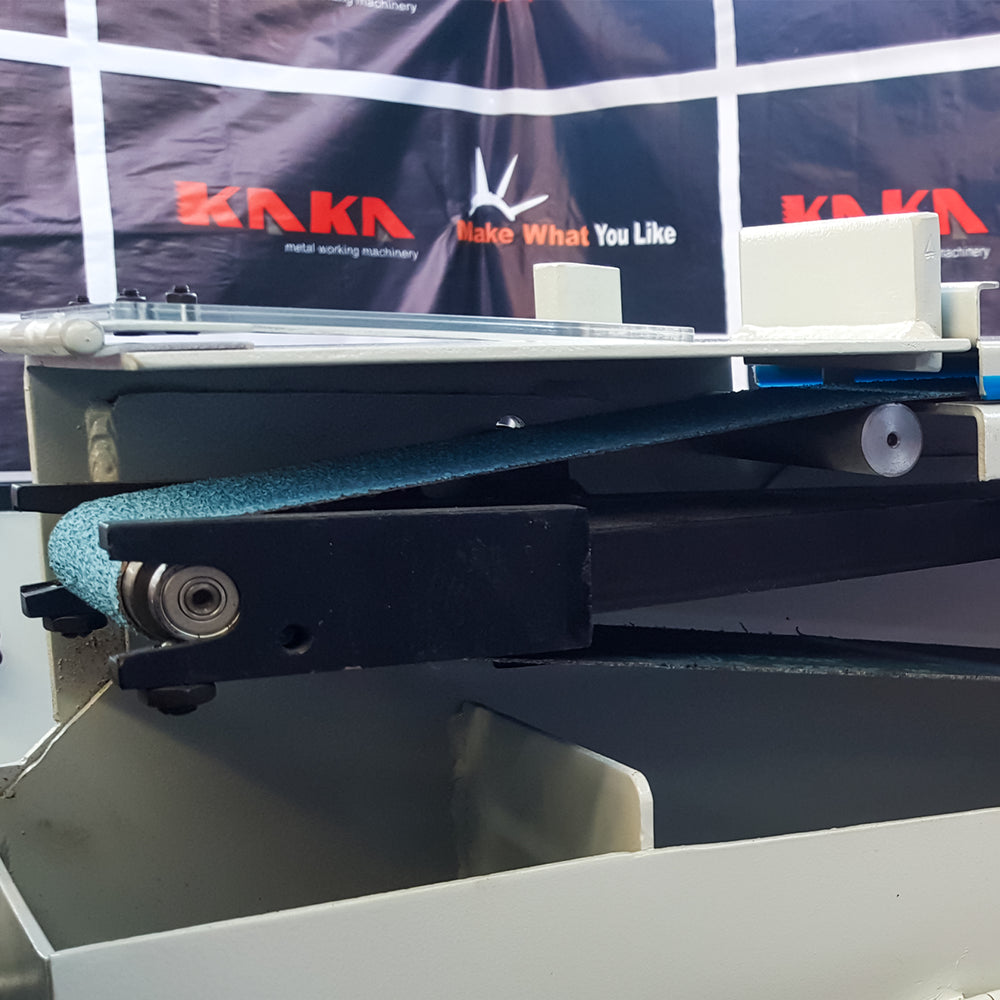 The KANG PRS-4A Pipe & Tube Notcher - Linisher is a versatile pedestal-mounted machine, designed specifically for notching round pipes and tubes to create precise saddle joints for welding, as well as functioning as a linisher for general sanding and finishing tasks. This heavy-duty tool is ideal for fabricators, welders, metalworkers, and tradespeople working with steel tubing, handrails, balustrades, furniture frames, gates, and structural assemblies. It uses abrasive belts to grind and shape tube ends quickly and accurately, eliminating the need for manual torch cutting or multiple tools. Built for local garages, rural sheds, and professional fabrication environments.